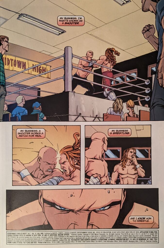 So… I guess Hammerhead lost his money? Hogan’s hands were looking pretty un-crushed in ASM 271. And they’re now saying Peter Parker got $10,000 for winning that match? That’s… a lot, even in 2002! I don’t know about all that. This is another one, like the Kingpin one, where regardless of the craftsmanship… is it really worth the money? Did anyone really wanna pay $3 to see the secret origin of Crusher Hogan? I’m not exactly shocked I didn’t remember this one. They say anthologies are a hardsell in comics, but I would say an issue like this isn’t helping. Again, not because of the quality of the writing or art, but because of the subject matter.