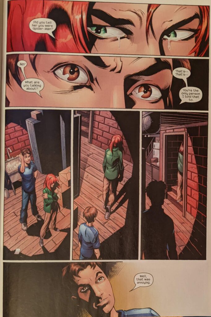 There was the hint of a vibe last time George came over, but May is definitely interested. Yet another thing you never saw in the old days. Later, in the basement, MJ has come over and found out Gwen is going to be living in Peter’s house. She is increasingly mad. As usual, Peter takes way too long to pick up on it, but finally does.
