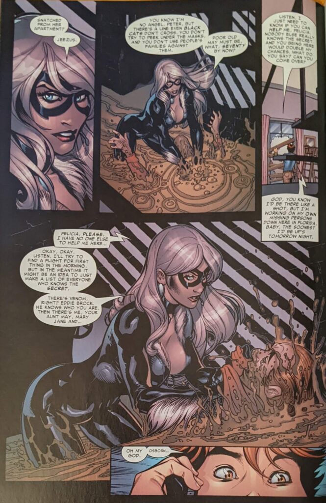 So, issue one was an excuse to let Osborn do a sort of Silence of the Lambs thing from jail or whatever, see. So why not start this book after the Pulse? Osborn plays up the “How could I have done it? Also I probably did it” shtick, implying he could’ve given Peter’s name to someone else and instructed them to kidnap May if Norman ever went to prison before saying he could have just made that up to torture Peter. We’ve seen this movie.