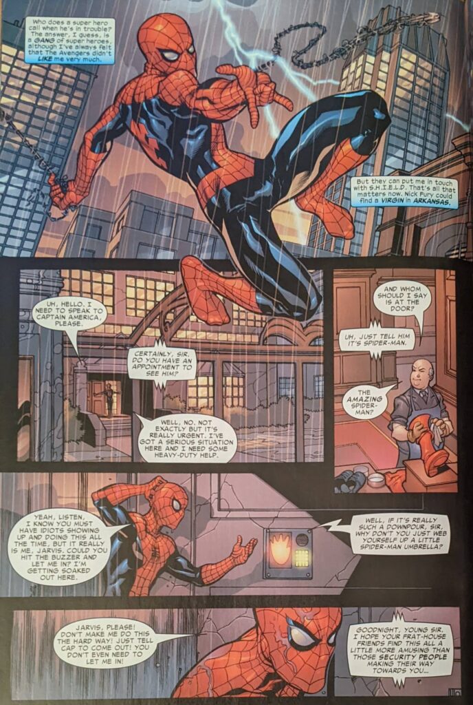 This is miserable. Since when does Fury know Spider-Man’s secret? The only explanation I can come up with for that is a reference to a book coming out at the same time as this one, maybe, but it’s so nonchalant.
