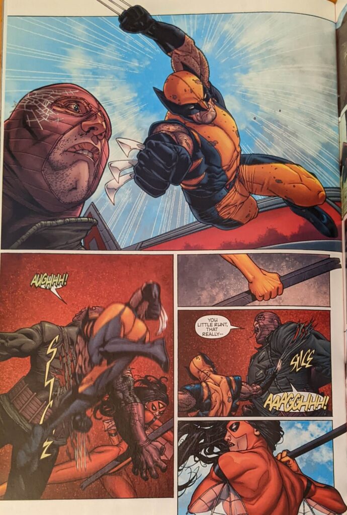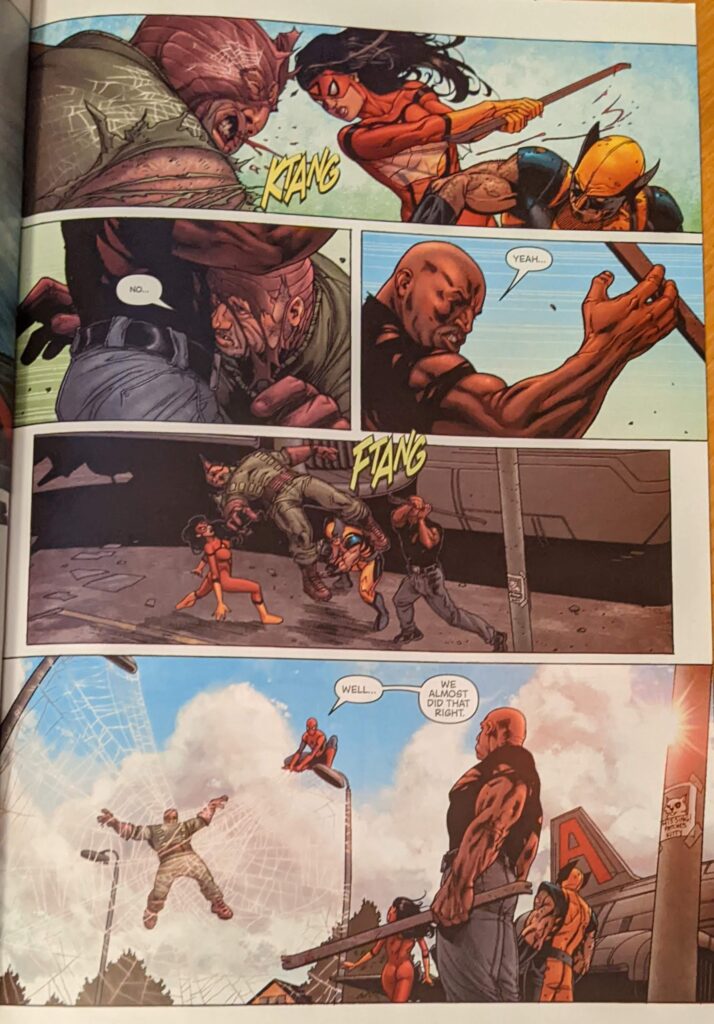 By the Quinjet, Spider-Woman is still just talking to Wrecker, who is ready to take her head off. Then we’re back to the desert.