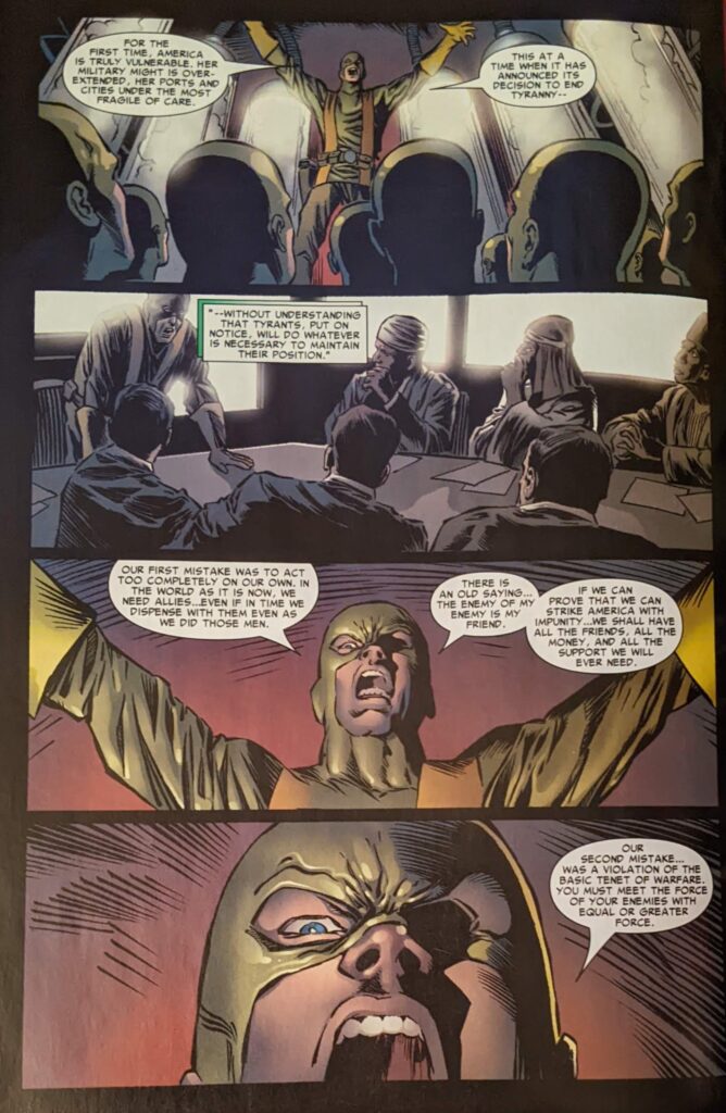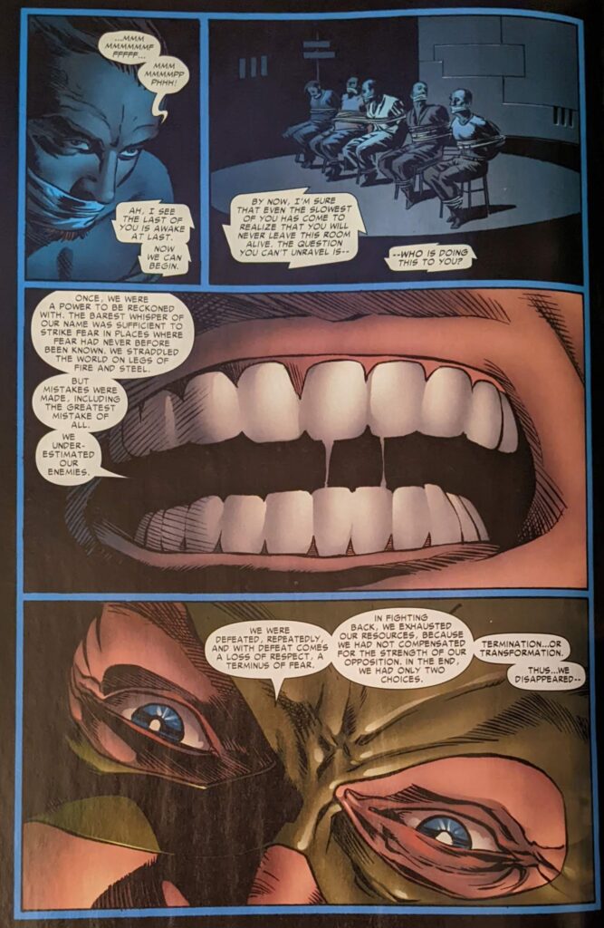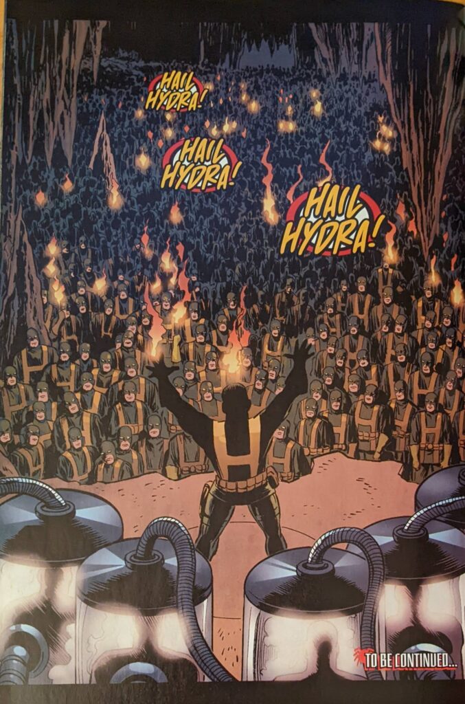 That close up of various facial features monologues a couple more pages, ending in the good ol’ Hydra chant before those guys are all executed by firing squad.