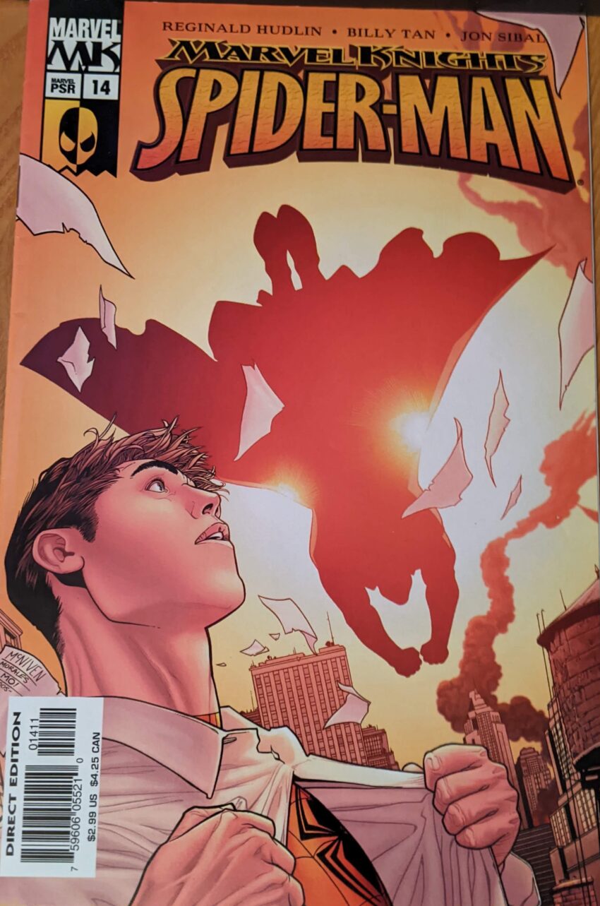 This sucks, top to bottom. Later, Peter is all depressed, and goes to bed early. May and MJ are unable to cheer him up, and he also refuses to explain to MJ how he’s got a bloody bandage on his chest. So… was he stabbed or “just cut” or what? This comic sucks!