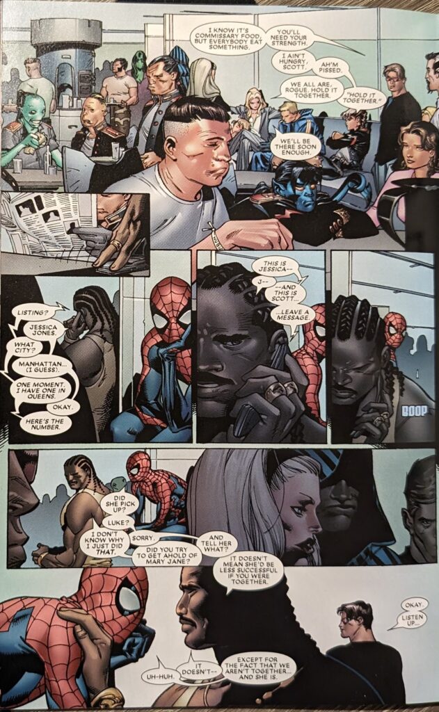 A nice personal moment for those two amidst the big business. Jessica Jones briefly dated Scott Lang between interludes with Luke, so he’s got to be hurting as much as Peter is.