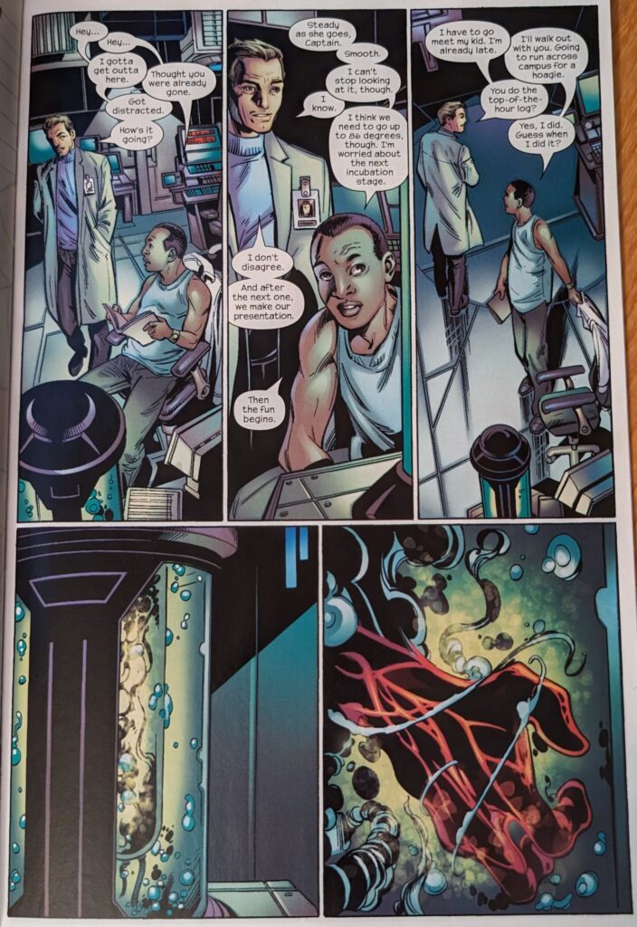 Well, that’s pretty unnerving! Meet Ultimate Carnage. Gonna be a weird one. The fact that they’re just letting this happen is so funny. Not the most ethical scientists!