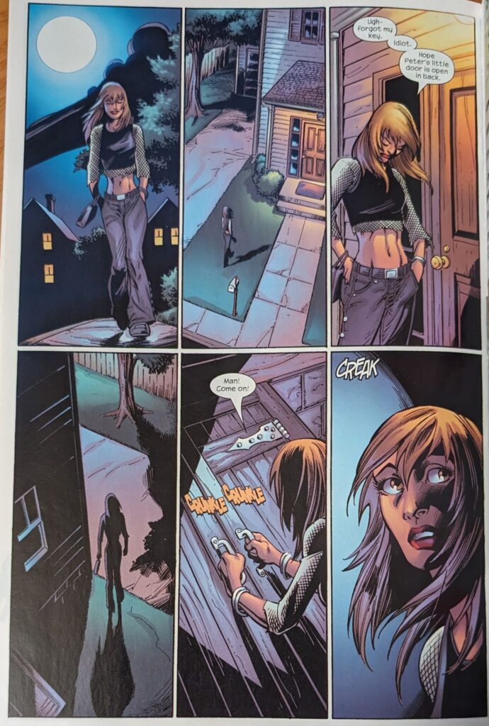 Much was made by fandom of that bottom right corner, lemme tell you. How does this DNA monster have memories? I mean, I know it’s super-science and I should shut up, but come on. It remembers Peter swinging on webs, and starts shooting strands of itself to mimic him, and remembers where he lives.
