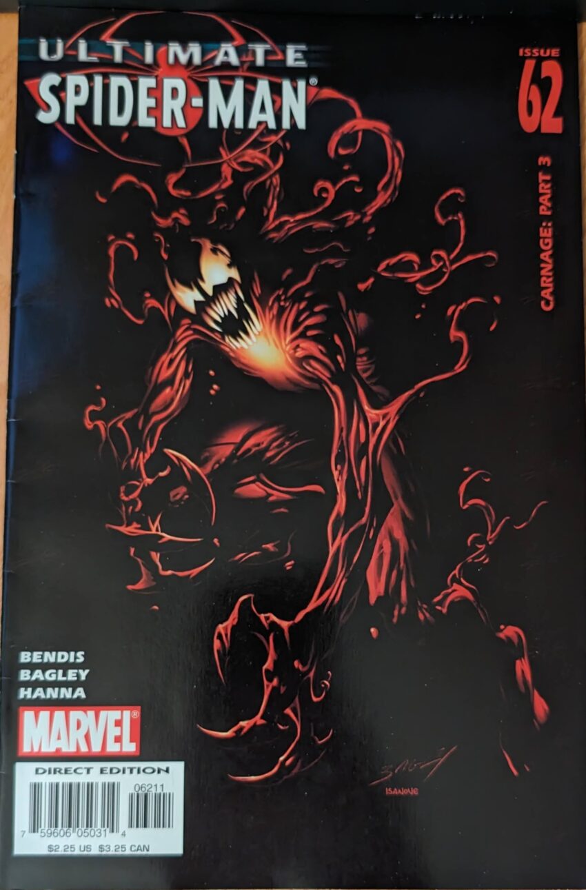Quality horror material. Can you believe it? They just killed Gwen. I mean, dying is Gwen Stacy’s job, but it seemed like we’d moved past that. On the other hand, she didn’t really seem to have a place in the book. The book’s focus seemed to narrow in recent years. Flash & Kong quietly got shuffled to the sidelines. After such a huge entrance, Gwen sort of did, too. So maybe it was inevitable, after all. This was, obviously, a massive shock at the time. Gwen Stacy or not, I don’t think anyone saw it coming. It’s real, too, she’s dead. Bendis would later publicly admit he thought this was a mistake. But he didn’t think it fast enough to save her.