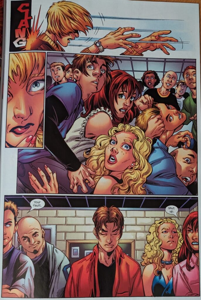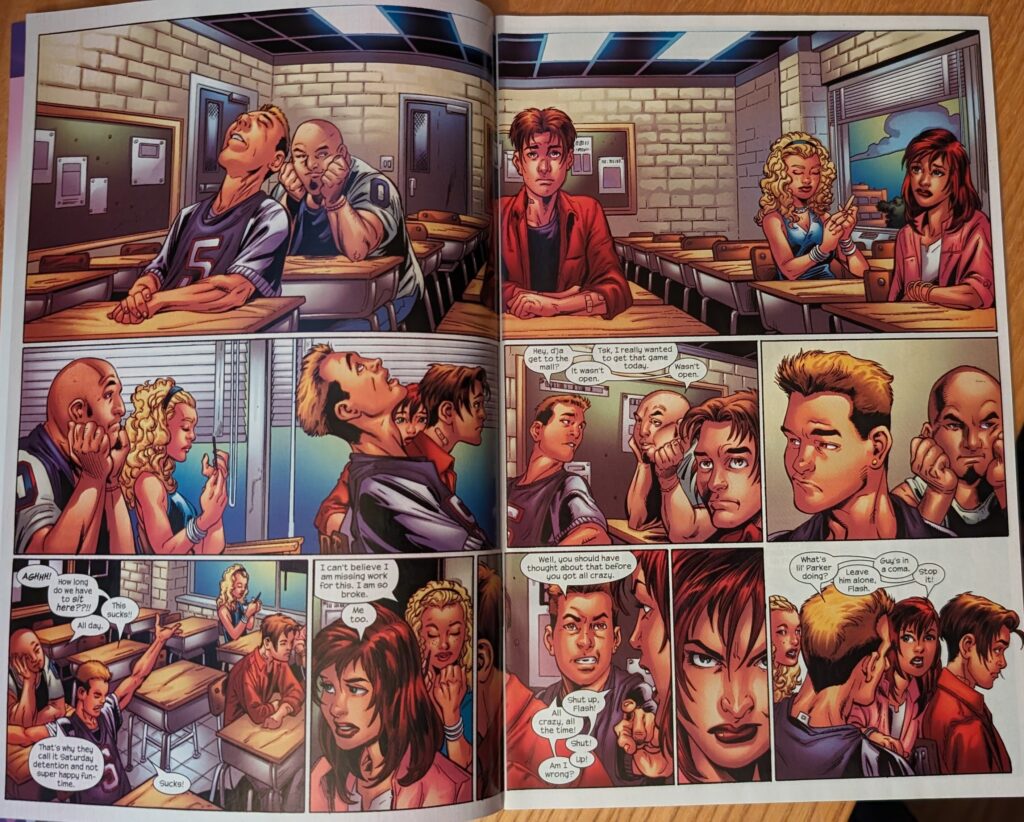 Well, Gwen’s dead. Gwen’s death was an albatross around ASM’s neck in 1971, as Peter couldn’t very well just go back to normal like nothing happened, but the book kind of wanted him to, while also making the famously funny character wallow in misery for a good long while. And comics didn’t produce anywhere near as realistic and nuanced takes on their characters back then as Bendis does in this series. One would assume sad times are coming. One might be surprised. But first…