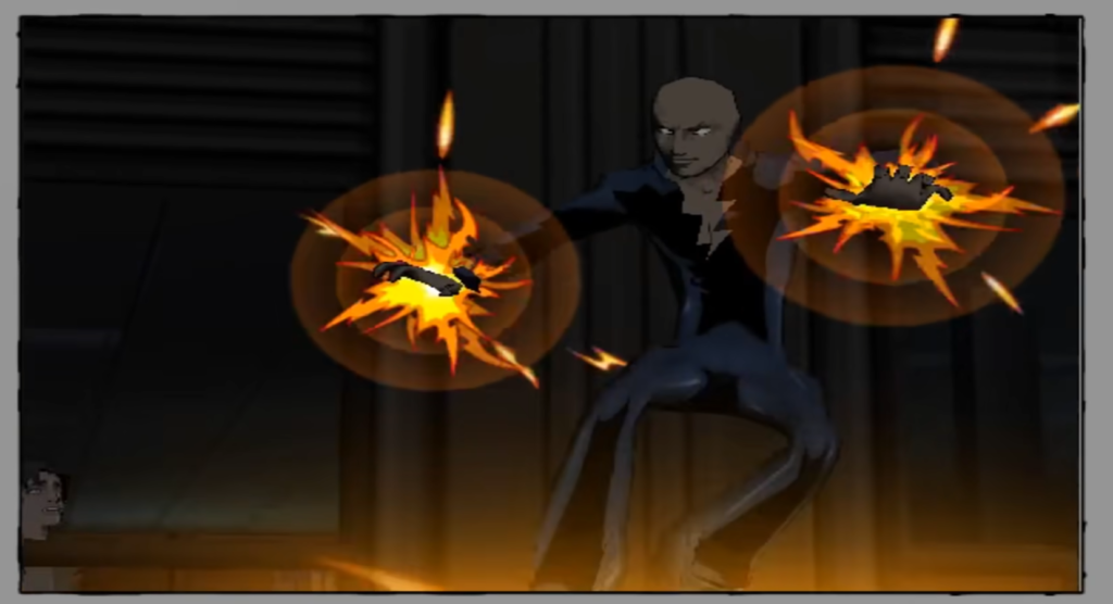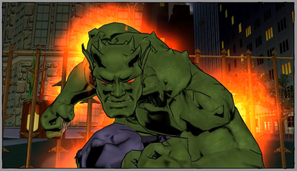 Now, a repeat encounter with Osborn should be a major event, but this is a Spider-Man Vs. Venom game, so not only is this treated as just another boss fight, Spider-Man’s reaction to seeing his worst enemy again is just saying “Oh, great.” I get not wanting to bog the player down with exposition since they likely don’t read comics, but maybe just don’t use Osborn at all? Spider-Man chases the Green Goblin through the city in one of the game’s interminable chase sequences, and then Norman also pulls the old “endanger civilians” move, then gets the drop on him so they can fight.