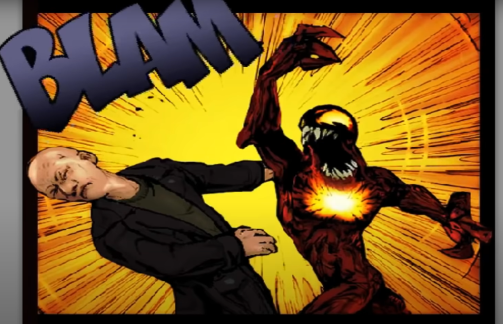 But Fury says Eddie is gone, and they don’t know where he is. Cut to “miles off shore,” where Eddie has snuck into the prison Trask is being held in, upset that Trask only got “3 years in a golf course prison” for all he did. He turns into Venom, revealing a slight change of appearance…