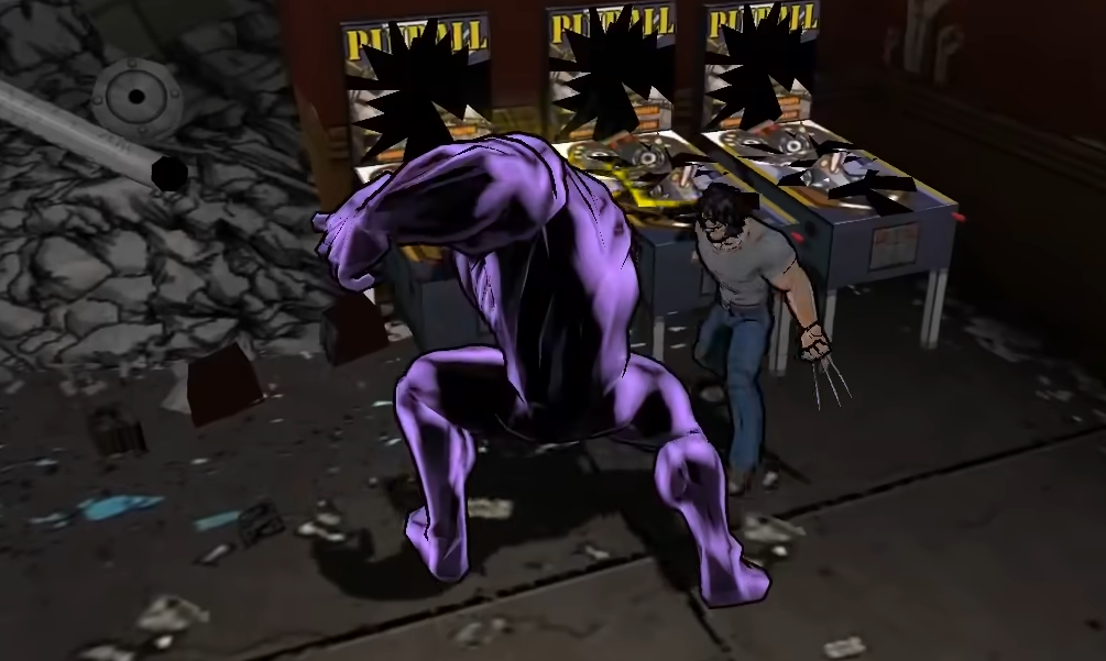 Johnny challenges Spider-Man to a race, which is just an excuse to teach you more mechanics. Then Spider-Man goes… somewhere? And the game switches to following Venom. We first return to the flashback, where we see Adrian Toomes watching the shootout, telling someone on the phone he saw “the suit.” Then Eddie narrates, saying he doesn’t know what happened, how long it’s been, or how he’s still alive, as Venom seems to consume a jogger in the park. Then the game teaches you how to play Venom a little, followed by an in-jokey reference to a much-hated aspect of the Spider-Man 2 game that has Venom feeding on a child?!?!?!, then fighting more random guys on roofs before beating up a motorcycle gang and going into their bar. you’ll never guess who’s inside. Really.