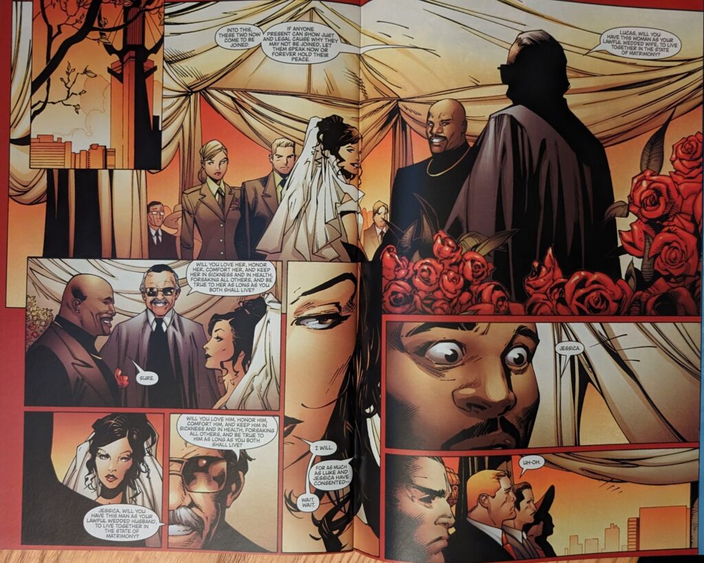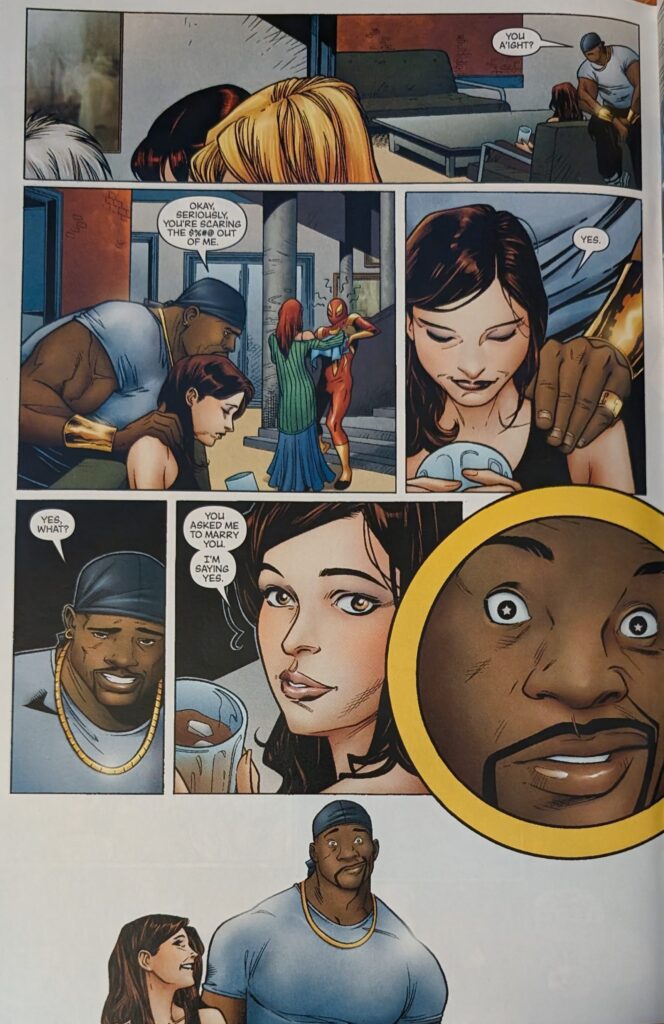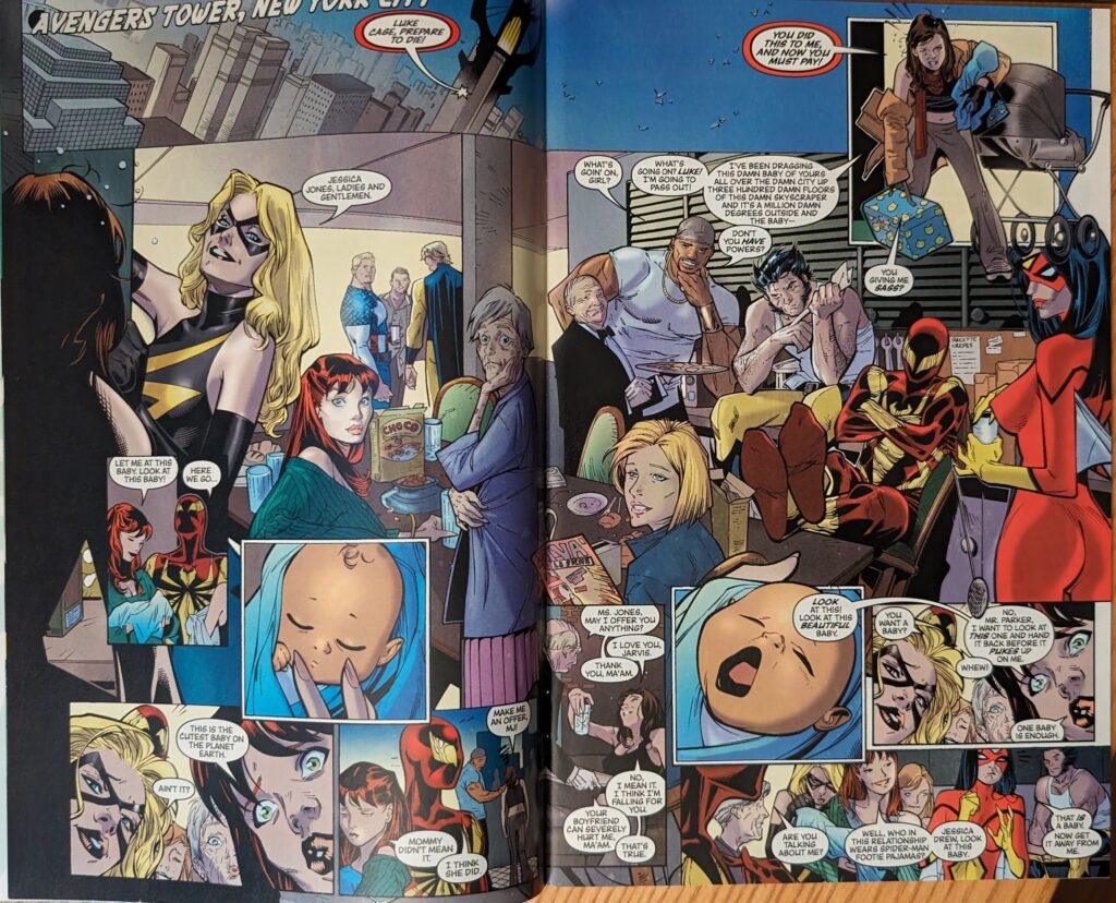 MJ on babies: Very consistent with her stance from ASM 265. Man, remember those days? I won’t lie, I miss the Vol. 1 era. It was just more fun to cover, in a lot of ways, for a lot of reasons. Also, Jessica Drew has since become a mom, which is kinda funny. A friend of mine was just like that about kids, and also became a mom, and loves it. That’s just how it goes sometimes. We’re just not gonna bring up the “For sale baby shoes, never worn” elephant in the room.