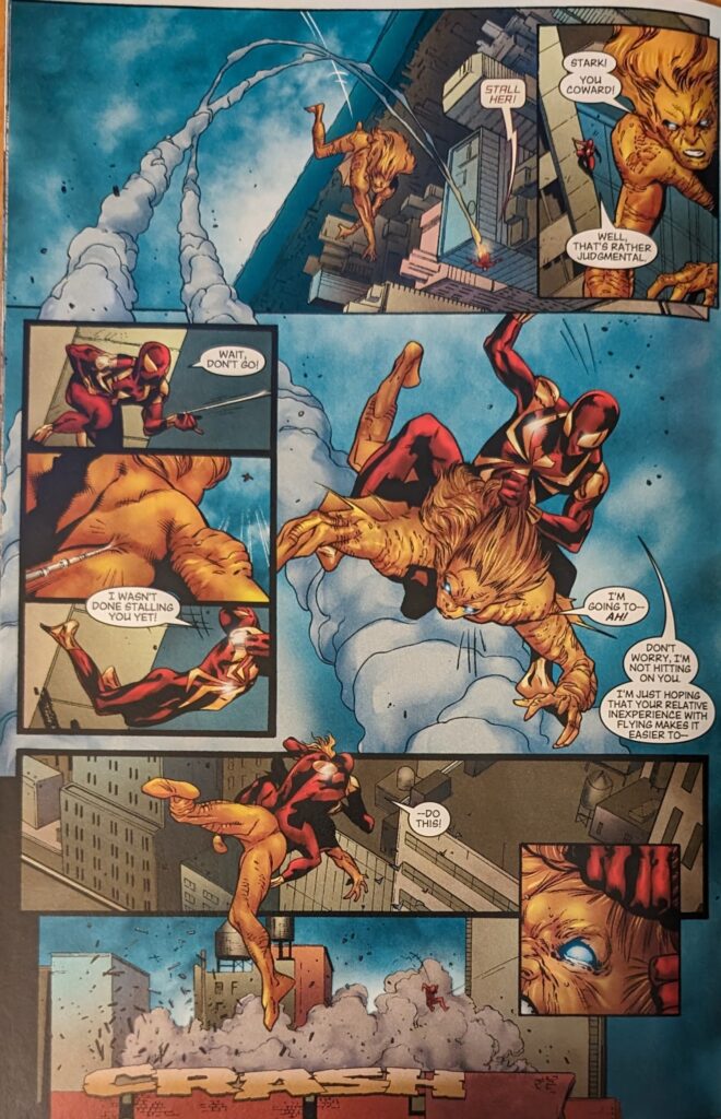 Coipel nailin’ the Iron Man suit. Just keeping track. If that seems mean, I can’t draw it, either, as I have already offered evidence of. It’s hard!