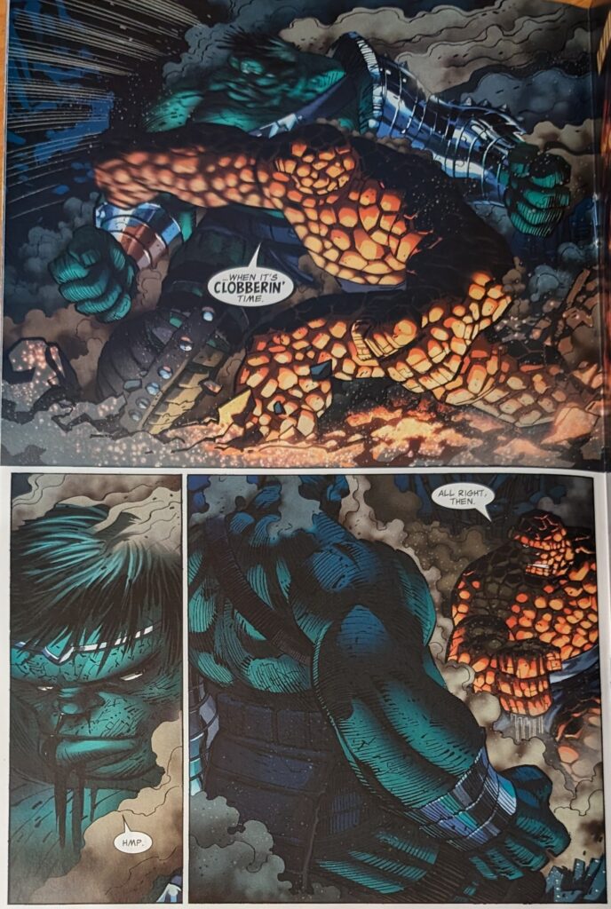 The oldest physical rivalry in Marvel Comics! But Hulk was always stronger than Thing, Ben’s edge was he was smarter and faster. And now Hulk’s smart and off-the-charts powerful, so…