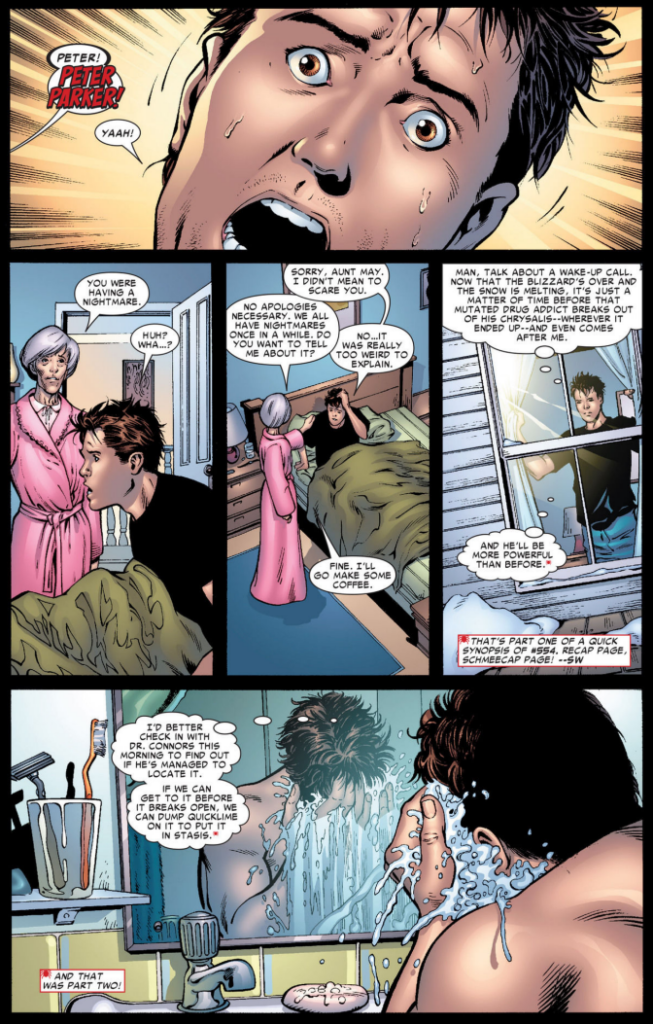 I hate this comic. The worst villain ever goes into his stupid chrysalis, and then Spidey covers him in the stuff he just snorted, and they say that’s that. Is it? I don’t care.