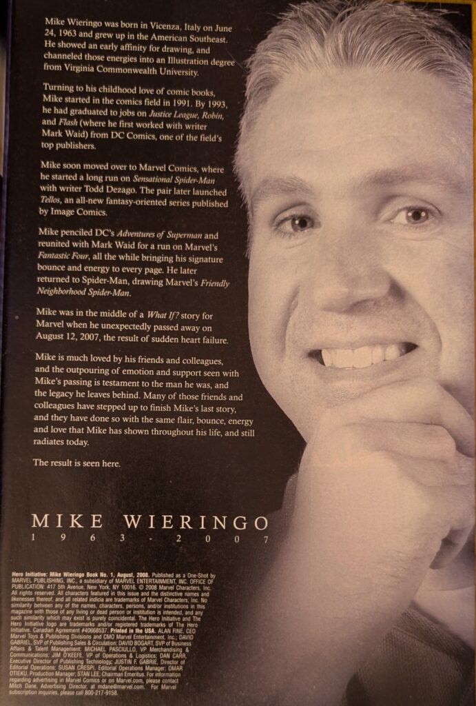 We close this block with this bittersweet tribute to Mike Wieringo. He was working on a What If thing about the so-called “New Fantastic Four” from FF 347, 348 & 349 when he died. This book presents his final work, and then calls on an all-start lineup of artists to finish the story.