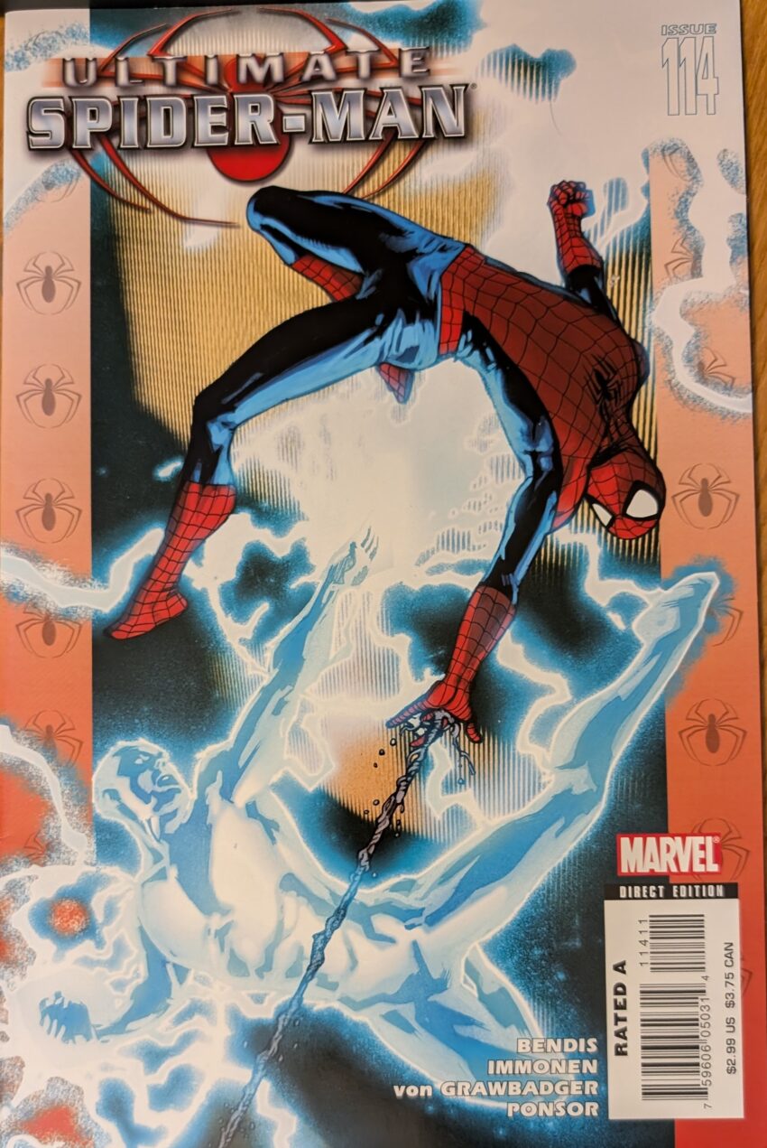 I took this picture for a very specific reason that won’t pay off for years. That’s just how it goes sometimes. Spidey sees evidence that someone is in the house, and then someone emerges from the bathroom toweling off, but it’s Electro. Neither of them is too happy about this development, but now they gotta fight, it’s in the contract. Electro powers up and Spidey is dodging electricity all over Norman’s place. Meanwhile…
