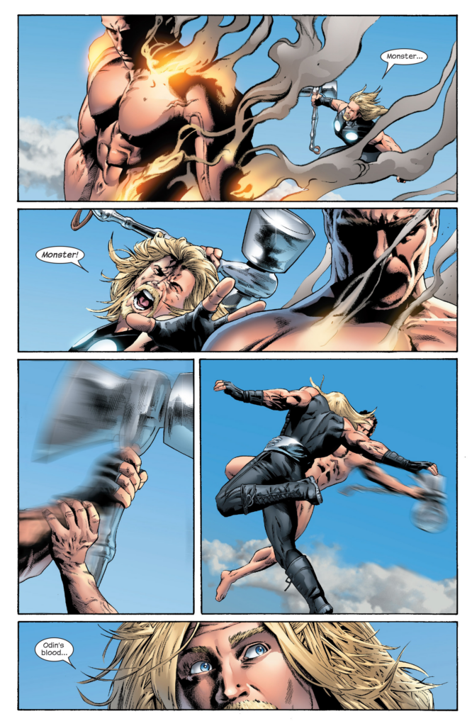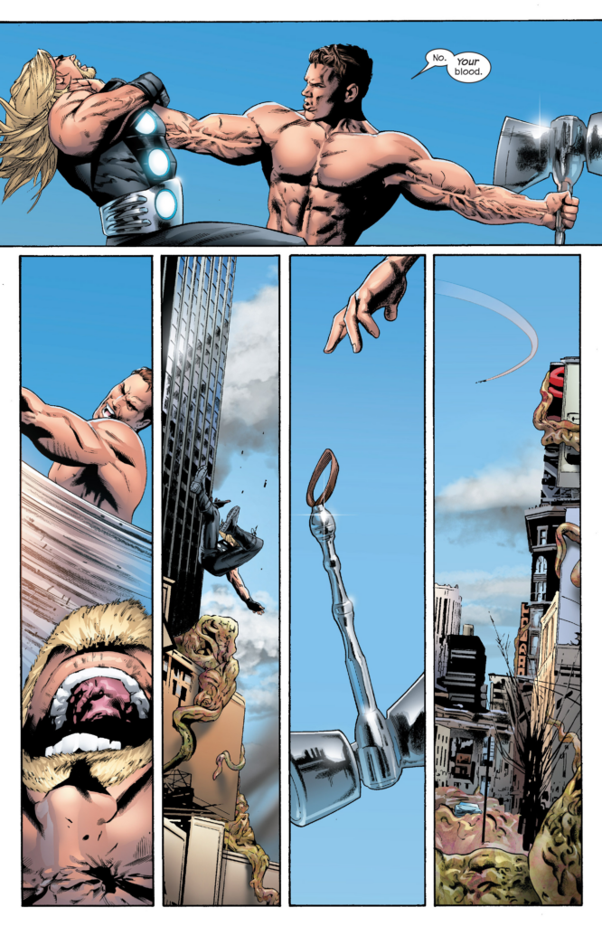 Yes. It’s the Charest Spider-Man again. Then a splash of Thor and Hyperion hitting each other. Then…