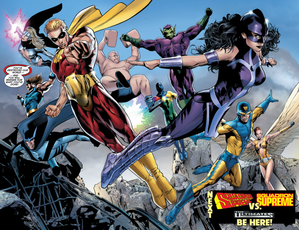 The original Squadron Supreme. Fine, man, why not? As they are from yet another alternate dimension, this isn’t a crossover with the main timeline, but it’s a step closer. I can’t believe they made a comic with the Whizzer in it in 2008. Pee Pee Man to the rescue!