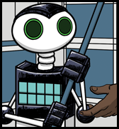 PAC is an experimental new type of helper robot. Designed internally by the Express Cargo Company, LLC, NBP, X5-18, he is the first robot of his kind and class to walk on two legs, and has the widest range of hand movement yet achieved in robotics. His primary objectives are diagnosis and repair of mechanical problems. His biggest innovation is being able to retract into a back pack configuration that doubles as life support for a space suit, allowing crewmen to use the robot's expertise even on spacewalks while traveling light. If he is deemed a success, The Company hopes to position BACPACIOT-01 as the ultimate robot for spaceship crews. More attention could perhaps have been paid to his language center, however.