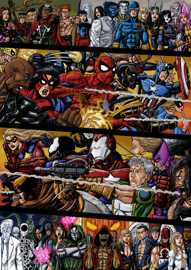 As detailed over on my All The Spider-Mans site, since 2018 I’ve been reading my ridiculously big collection of Spider-Man comics. I broke the comics up into groups (First 44, then 48, then finally 52) that would get me from Spider-Man’s first appearance in 1962 to the end of volume one of Amazing Spider-Man in 1998. Reading one a day or so, it’s taken a long time. In 2019, it struck me to start making these images to sum up each block of books. In August 2022, I finished the last comic in the Volume 1 era. I drew the 52 pictures out of chronological order, as I was skipping around the timeline to keep myself sane. But below they’re in chronological order. There’s a lot of repeating motifs and gags and ideas throughout. I wanted ideas to repeat down the decades. I cannot believe I was almost done before I thought of the web gag, I wish there were more of those. Oh, well! A lot of the images include a Spider-Man and maybe another figure swiped from an artist from the period in an attempt at additional authenticity, as noted. I tried to make the line art and and color styles copy the feel of the different eras, which makes the color get more challenging in the late 90s. Like most things I do, it was a lot of work for no real reason, audience or profit. I had a great time. And now I’m on to the Volume 2 era, as well as Ultimate Spider-Man. Click on an image to get a bigger look and some explanation of what’s going on!
