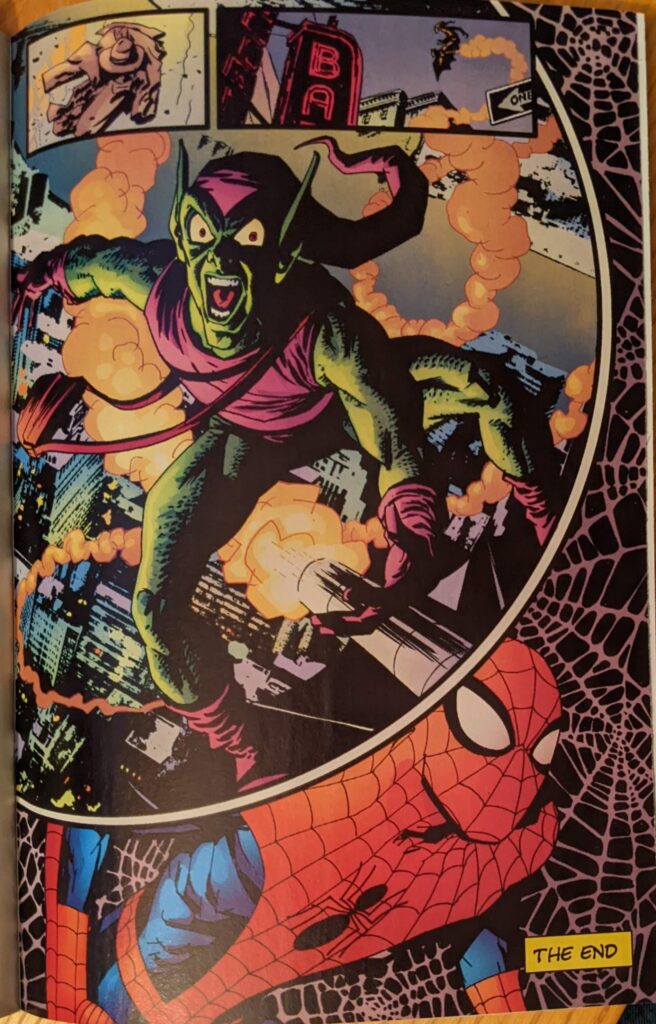 The Batman The Animated Series episode “Almost Got ‘Im” casts a long shadow, and this can’t help but feel like a feeble imitation despite the reveal being Norman instead of the hero. But, since I sold my copy of Sweet Charity and I couldn’t find a book in my collection with part one of the Kraven 2-parter than ran in the backs of books like the Jay Leno thing, this is the last we’ll see of Zimmerman on this blog, so I got that going for me.