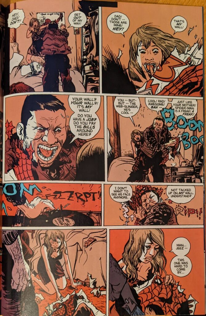 What a creepy Spider-Man! A lot of people have tried to make him seem creepy over the years, but few have been this successful. Why is he creepy, tho? Where’s the wisecracks? Why didn’t he ask this random girl in a crime scene if she’s ok? Very odd.