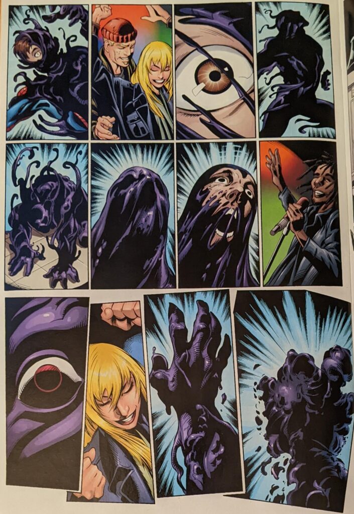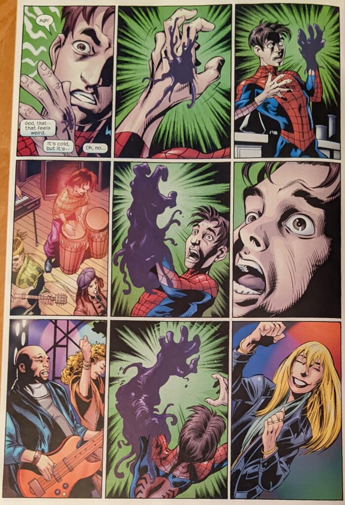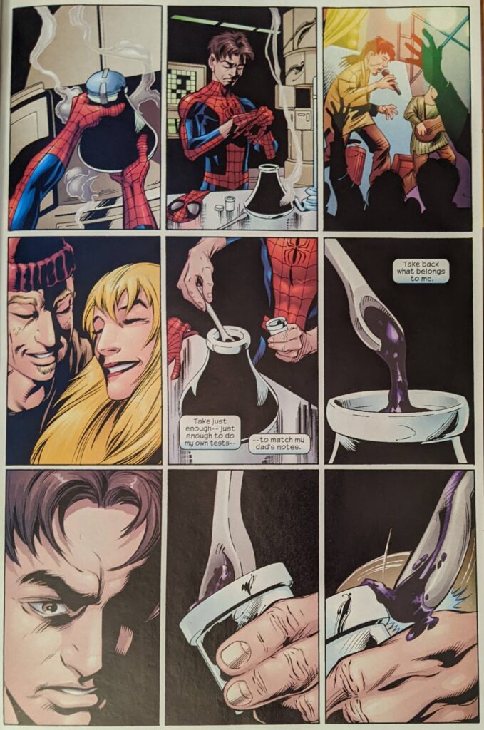 I don’t even know if it’s intentional, but Peter with the goop going down his arm in panel 5 echoing Peter with the spider on his hand in USM 1 is cool.