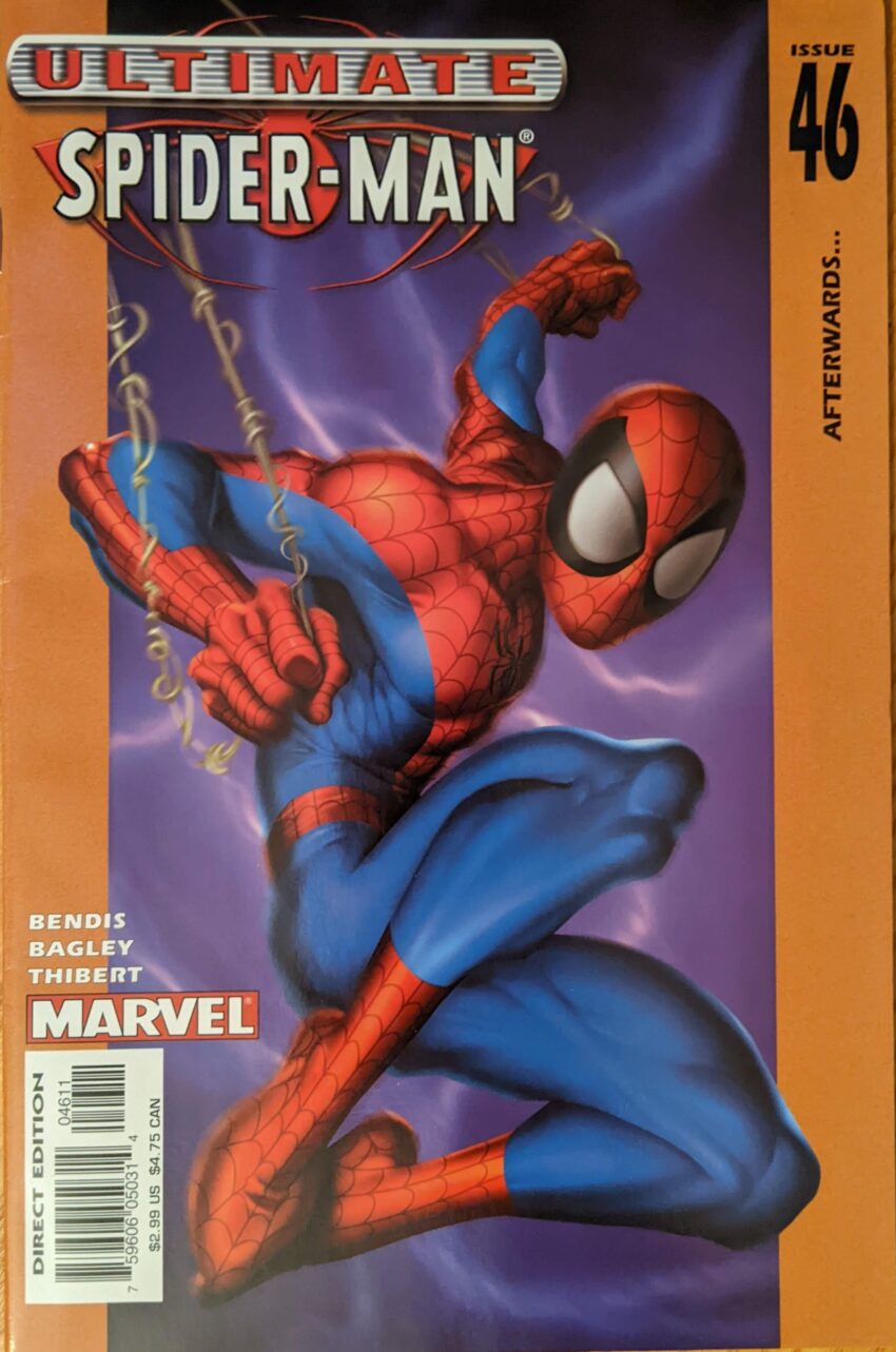 We’re back to the Ultimate Universe! For an issue that’s mostly an epilogue to our previous block, but which also directly sets up the first major story of this one, so I kept it til now. Another cover that got a lot of use in other things.