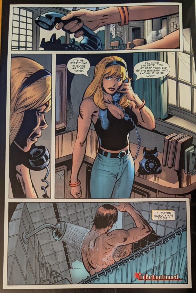 Yeah, more of this. Everyone was just clamoring for more of this. Now with covers by noted hack Greg Land. He was clearly looking at Mike Weiringo for that Spider-Man, and the Gwen will just be some lady he traced. He was infamous in this period for just tracing any head he had in his files, no consistency from panel to panel. He routinely traced real stars, porn stars and wrestlers (There’s a picture of the wrestler Triple H that has appeared in, like, dozens of comics with different heads stuck on). Gwen appears to be Christina Applegate on this cover. As we’ve seen, a lot of guys are tracing photos at this point, but none of them are as lazy and creatively bankrupt as Greg Land. Part of the frustration is when he’d swipe from a comic book artist, he DIDN’T trace, so you got this crappier version of a familiar drawing. He swiped Travis Charest one time. That guy’s one of the true fine artists of 21st Century comics, and here comes this dope stealing from him. Needless to say, a popular mainstay Marvel artist. He’s central to my belief that people don’t actually spend any time looking at comics art anymore. His success is proof of it.