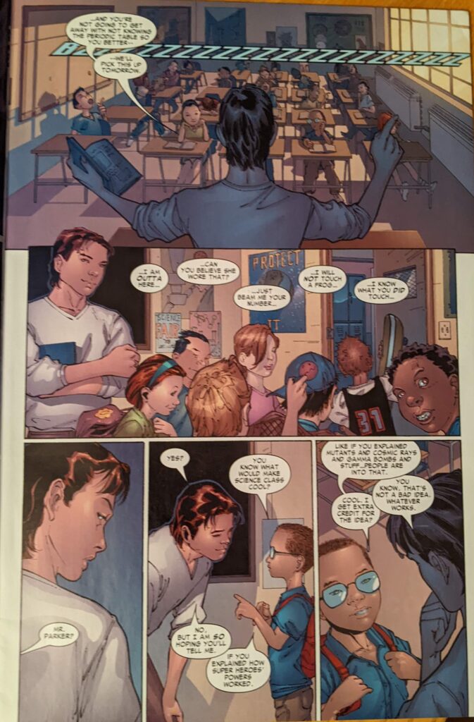 I mean come on. Yuck. But wait, let’s go see Peter Parker, high school teacher, at his job…