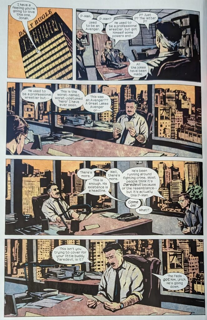 This story’s B-plot is Ben Urich doing a story on D-Man, the joke of a character who was once Captain America’s partner.