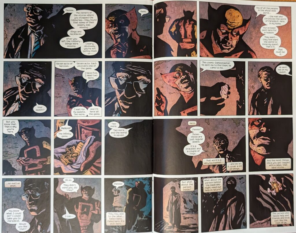 I think I mentioned before that Jessica Jones, the real Jessica Jones, was Michael Gaydos’ then-wife. They are not together anymore, and that kept Gaydos from returning to the character for a long time, for obvious reasons. He did finally join Bendis on a new Jessica series when she became a Netflix show, though. It was a fun reunion for readers, I hope it wasn’t too weird for Michael. But it allowed for him to do amazing pages like that in his photoreal style.