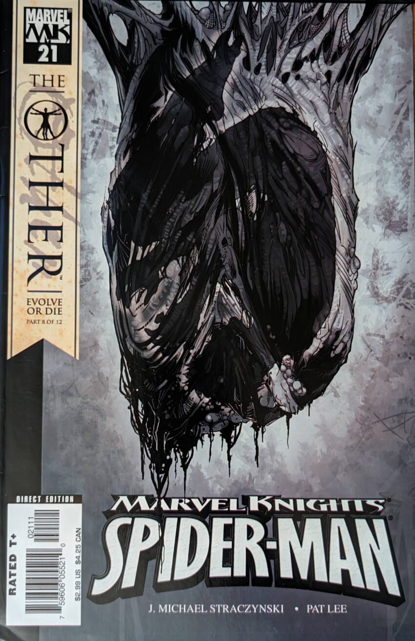 Straczynski scrambling to cover this cocoon nonsense with spider facts. “They shed their skin, see?” Yeah? Do they do that and then travel a great distance to make a cocoon? No? Then who cares? What a farce this is. And they have the nerve to be like “Who… or what… will emerge?” in the next issue teaser. Oh, I don’t know, I’m guessing Peter Parker, back to normal. Ugh. How do we go 3 more issues after this? He’ll be back next issue, the end. Morlun got turned to dust. This story is so bad…