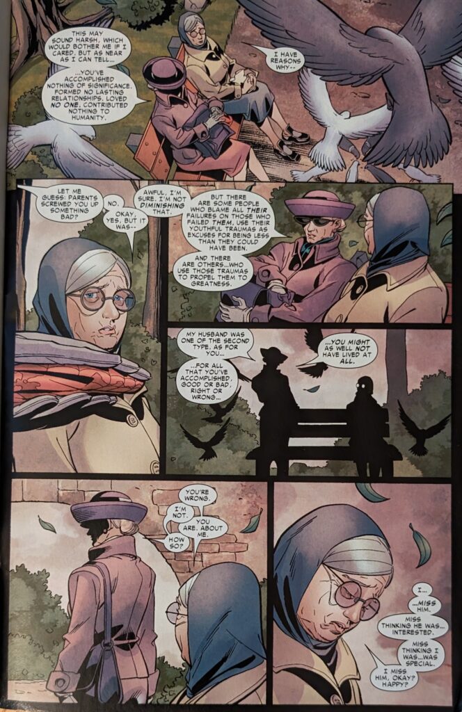 Well, that was weird, mean, and pretty depressing! Great stuff! What in the world was that? They finally slip the yoke of the Other and this is what we get? Worse, Mike has just 3 more issues on this title. Come on, David. Give him something good. I’m beggin you.