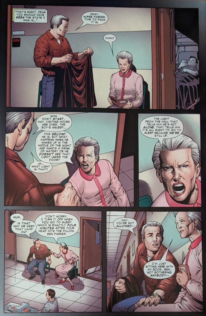 Are they really meant to have taken Peter so young? After the flashbacks last issue, I’m willing to trust Sacasa on this. Maybe I’m just thinking of Ultimate Peter. But I thought he was a toddler or so.