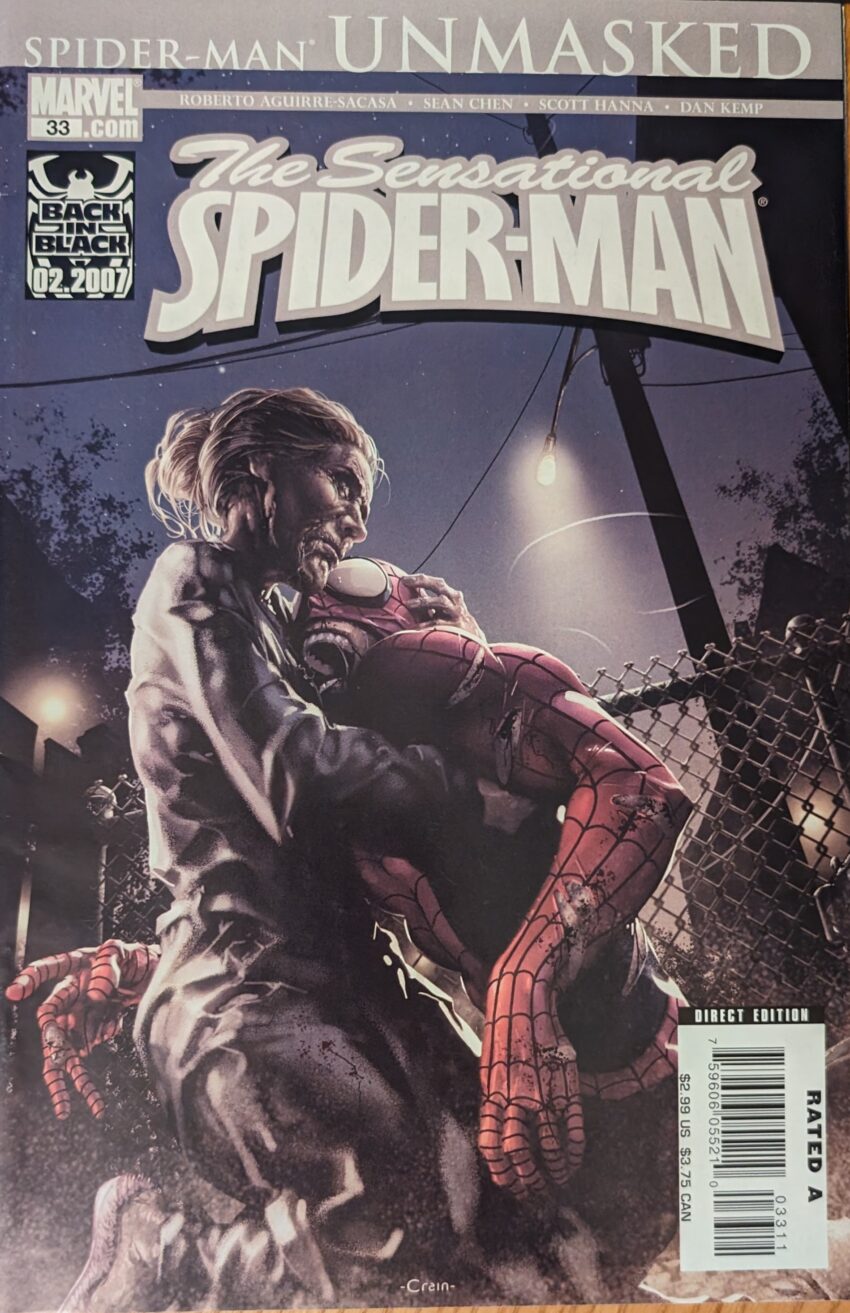Ya know, we got off to a rough start with that goofy Stegron business, but I’m starting to wish Roberto Aguirre-Sacasa had wandered into the Spider-Office sooner. He really gets these characters. But his timing couldn’t have been much worse. I mean this issue is building a real case for why May was so overprotective all the time, a psychological thing for her and not just a plot device and/or a comedy bit, depending on the era. And it’s the new, more realistic May thinking back on it. Very nice. We cut away to Rhino to find out he did, indeed, come after Spider-Man as part of Chameleon’s scheme, not knowing Chammy is now in jail and can’t pay him. Then we go see…