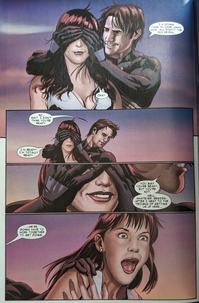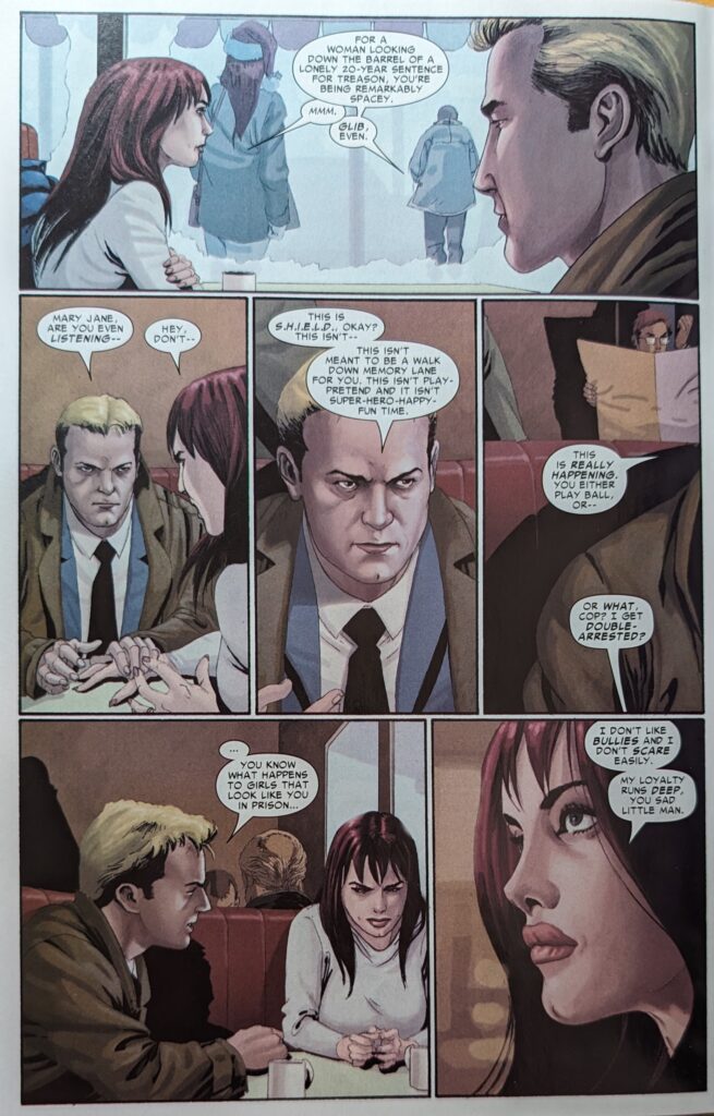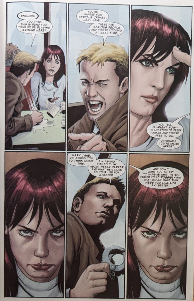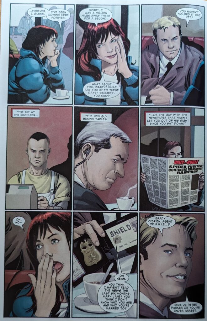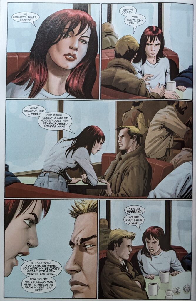 MJ is telling Brady that her time in LA, while she and Peter were separated, was the loneliest time of her life. And Brady is 100% Ben Affleck in a single flashback panel. He says he felt something when they were together.