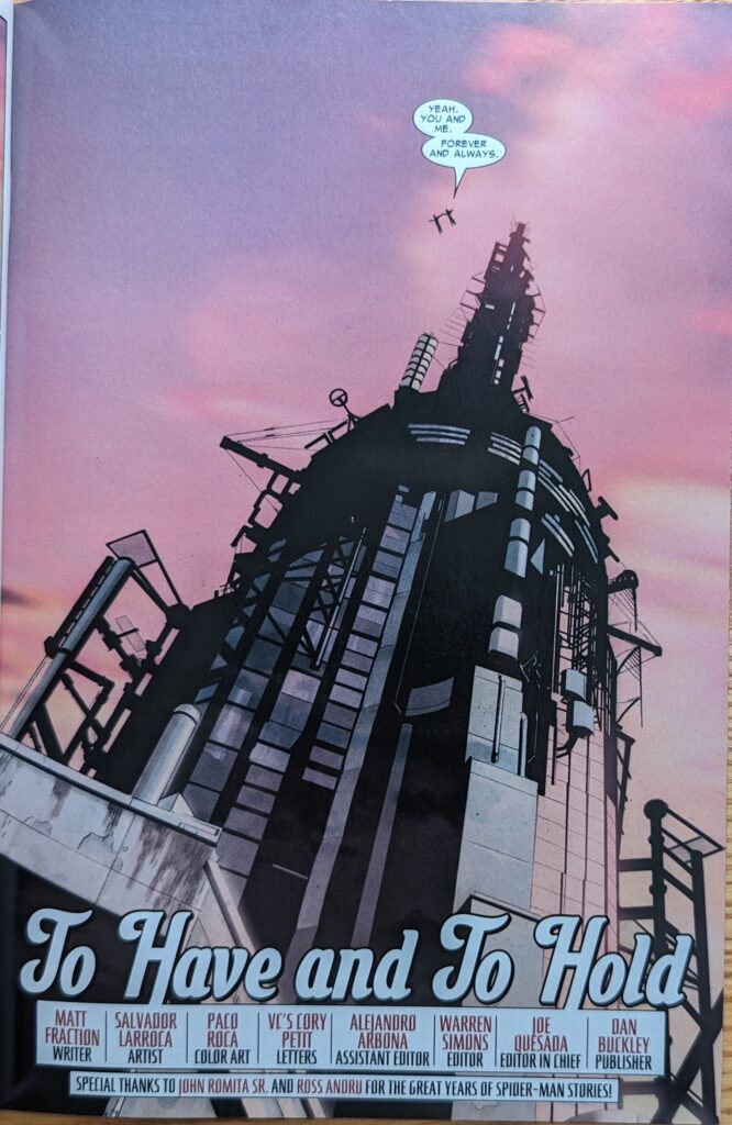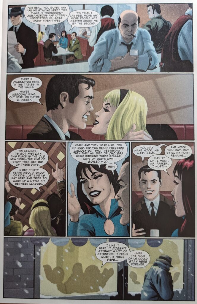 I mean, wow, right? A tour de force on this relationship. Versions of Peter and Mary Jane you’d love to read more of, and a reaffirmation that their now 20-year old union is still strong. What a strange and cruel time to do this comic…
