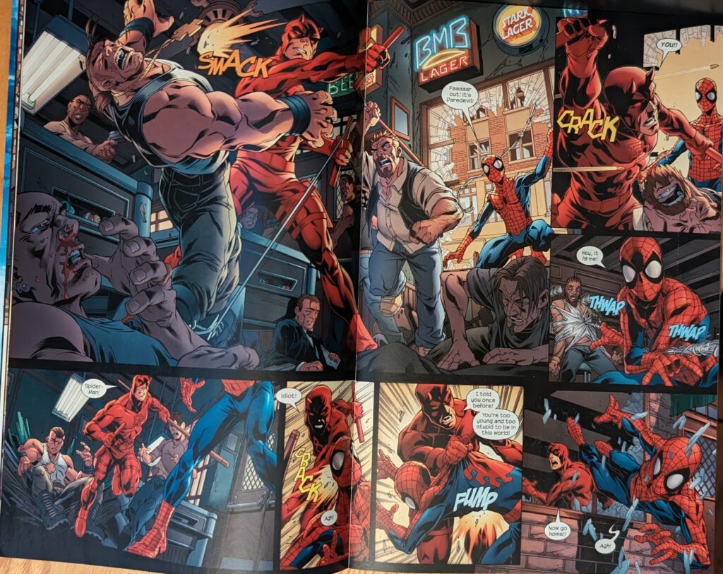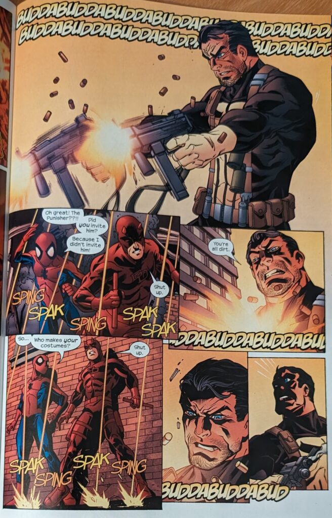 That “Faaaar out! It’s Daredevil!” thing has to be a reference, but I don’t want to go re-read all their 60s & 70s meetings looking for it.