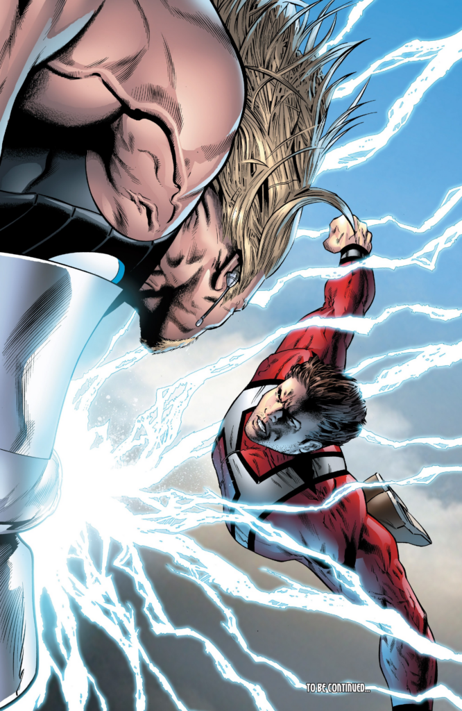 Well, that was a bunch of nothing. “I was thinking, what if we published comics that somehow had neither character development nor plot development in them?” “What would that look like?” “Just a bunch of traced guys flexing, I think.” “Eh, why not?” Maybe something will happen next issue. I doubt it!