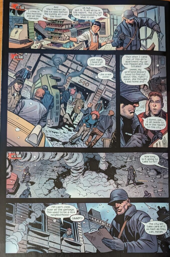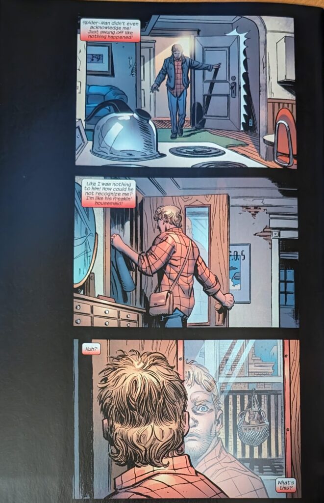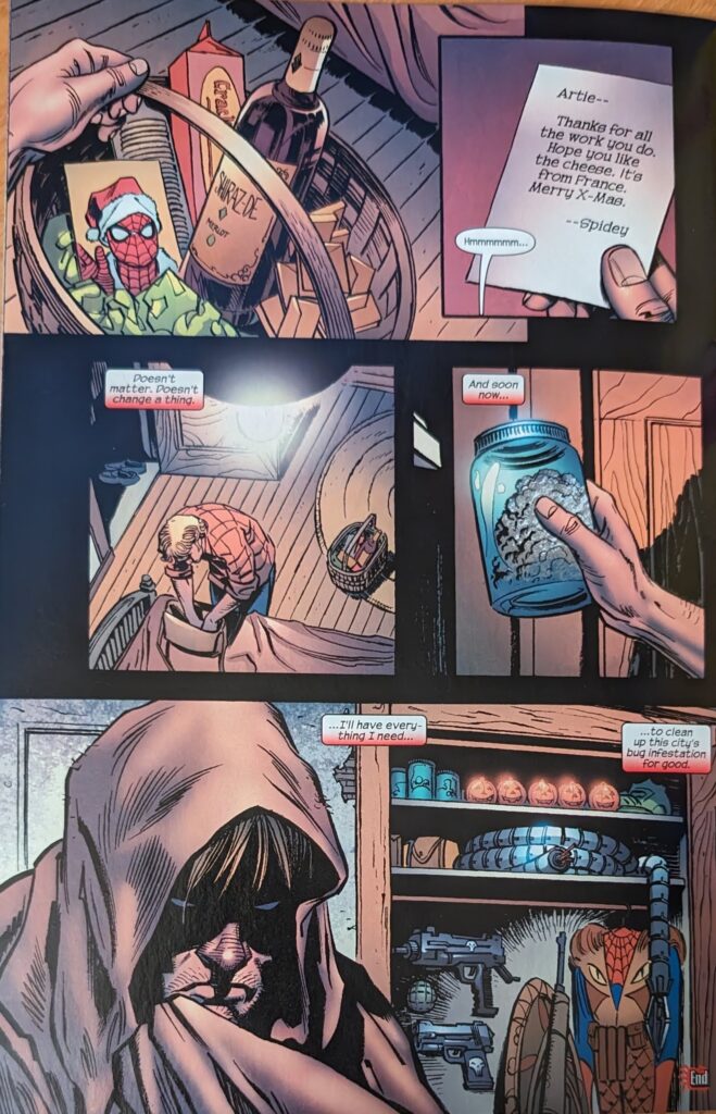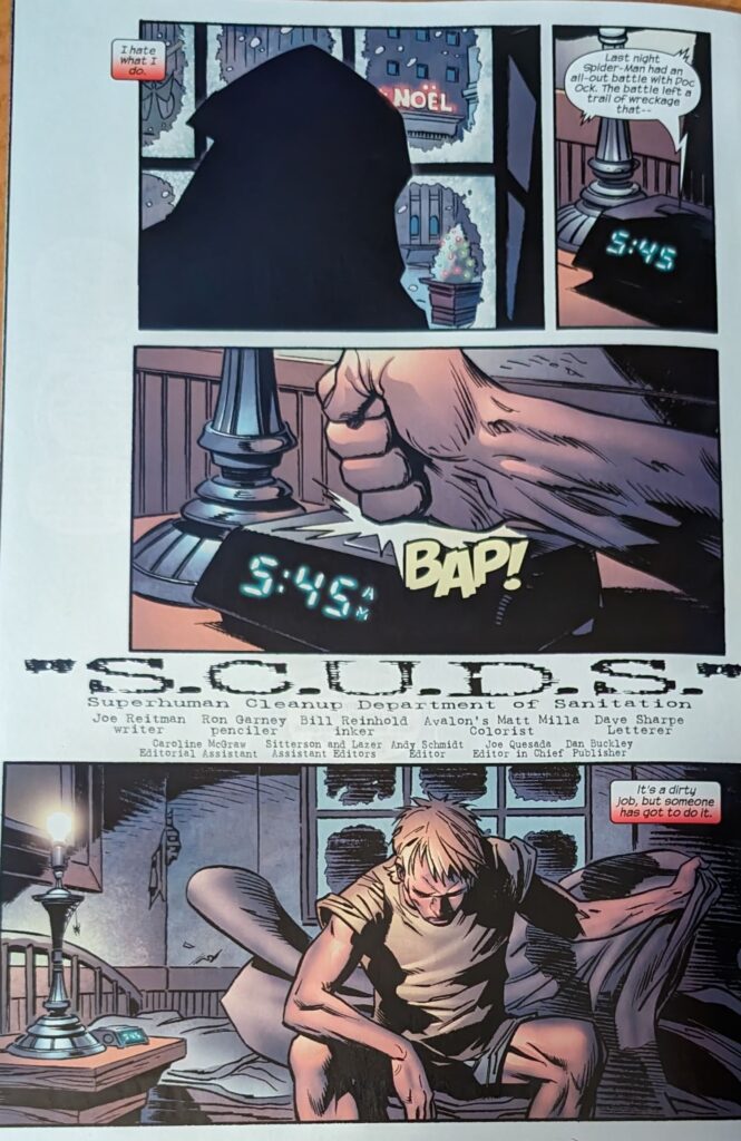 That guy turns out to be a member of the “Spider-Man Clean Up Crew,” dispatched to clean up after his fights in particular. That seems odd. Who’s on the, like, Moon Knight clean up crew? I assume they have a lot of time off.